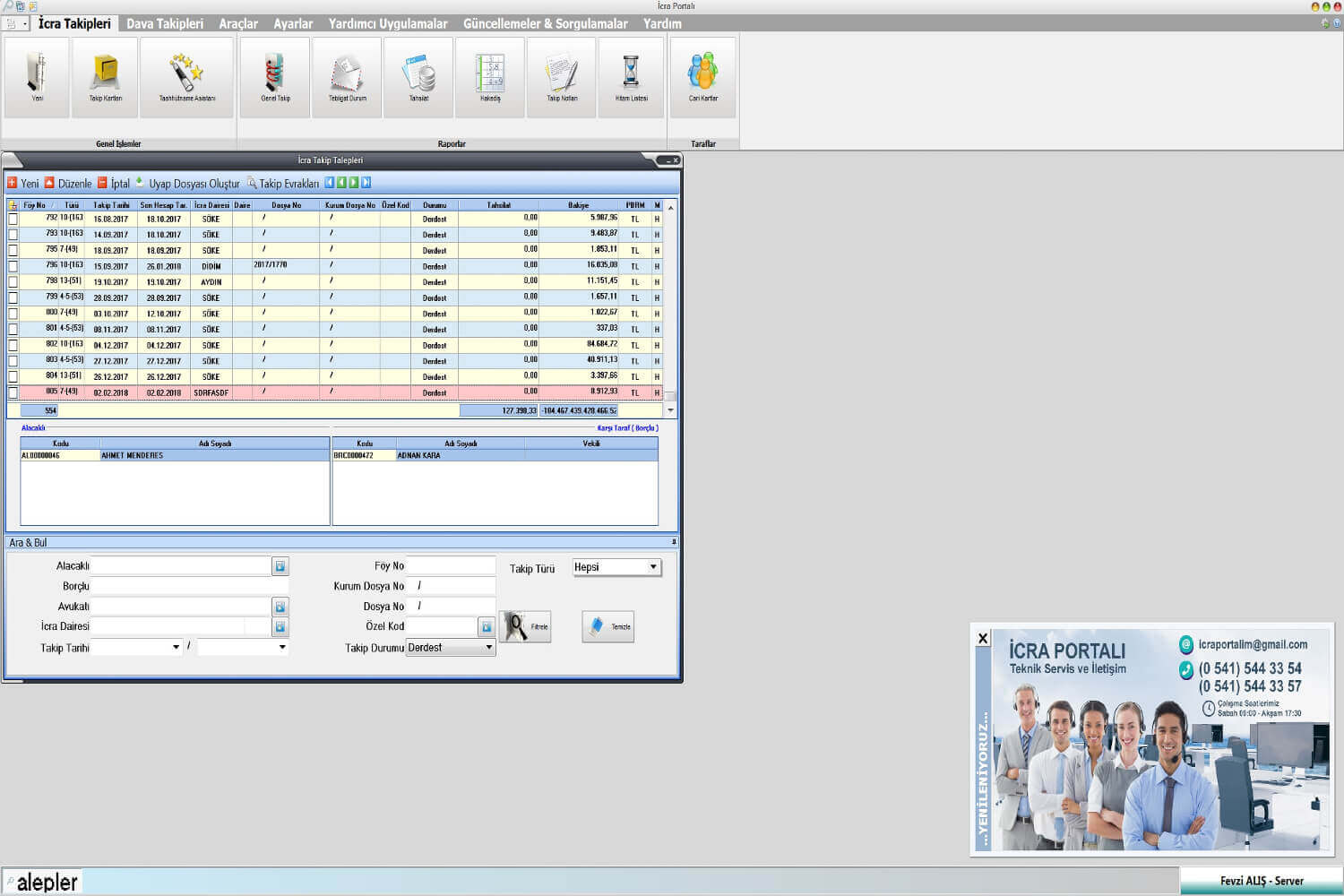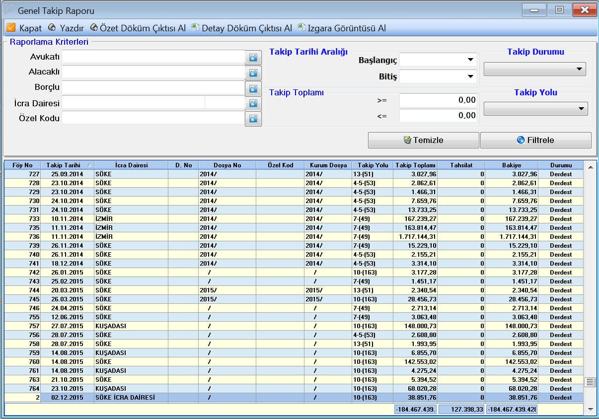 İcra İflas Kanununda belirtilen tüm türlerde takip oluşturma