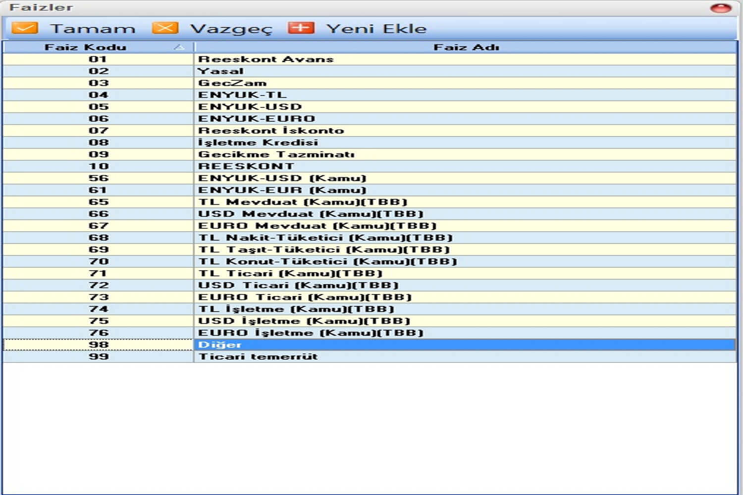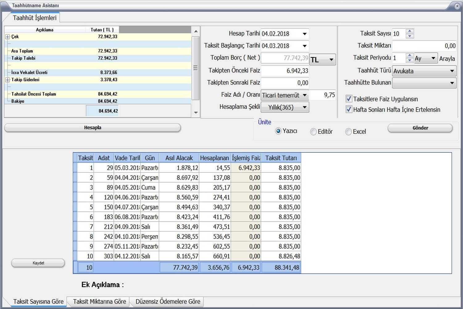 Uygulamadaki bütün faiz türlerinde otomatik olarak sabit veya kademeli faiz hesabı